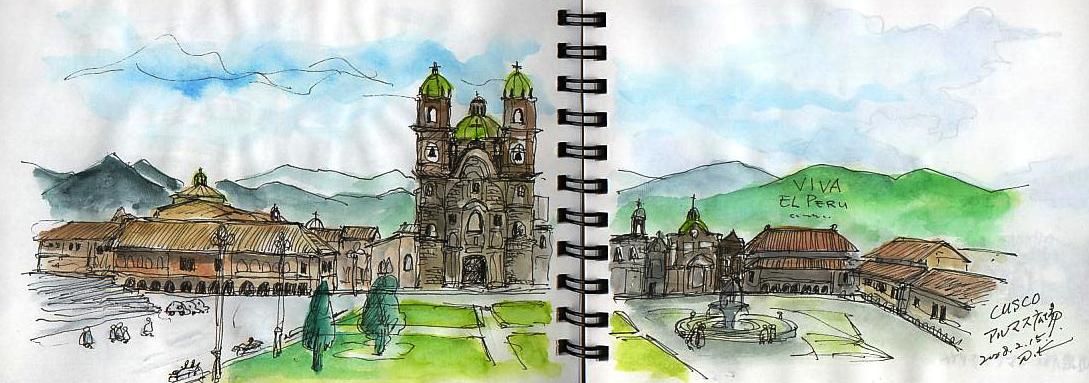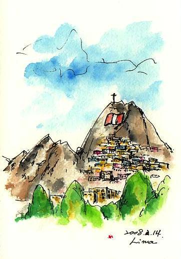 ペルーの旅の掲載を始めたときから表紙にしているこのスケッチは確かに旅の途中での作品ですしかし現場でスケッチしたものではありません「待ちきれずに」描いたのです写真を見ての一枚でした現場でこの一枚と見比べて「来たことを実感」しましたお気に召しましたら人気blog投票をクリックして下さい