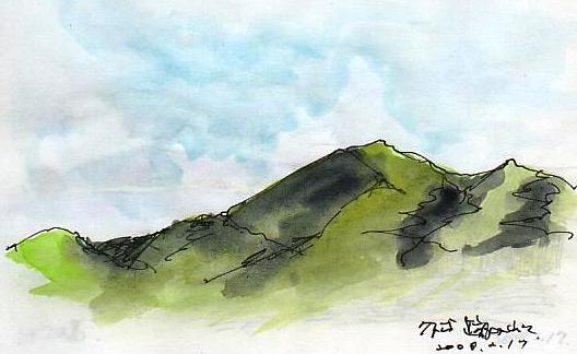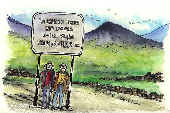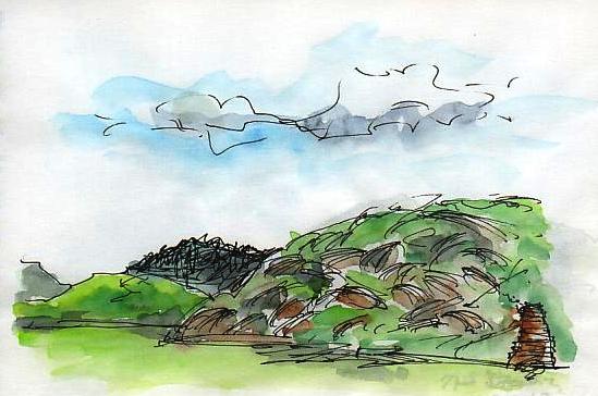 マチュピチュから3000mをはるかに超すクスコに戻った高山病の症状に悩みだすメンバーが続出するかく言う私もその一人ホテルで酸素マスクの厄介になるとはいえこれから更に1000mも高所へバスでの移動である途中の景色はこのスケッチのように素晴らしい景色が続くのに・・・うつろな視線で追うだけだったお気に召しましたら人気blog投票をクリックして下さい