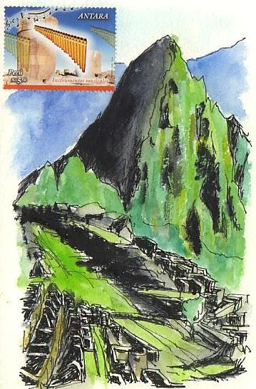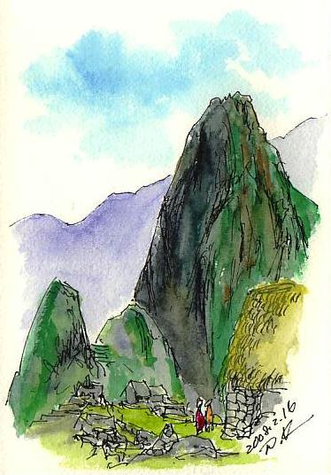 マチュピチとはそもそも山の名前で「老いた峰」と言う意味らしい今は「空中都市」をそう呼んでいるがもう一つの若い峰(ワイナピチ)との鞍部に拓いたところそそりたつこれらの山の足元を蛇行するウルバンバ川(絵の左下)そして傾斜面に作られた棚田などの景観も見事といえようお気に召しましたら人気blog投票をクリックして下さい
