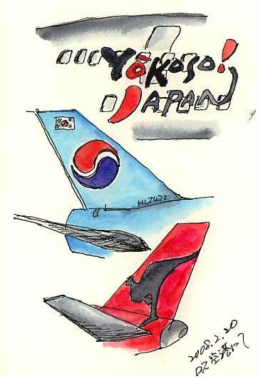 ロスの空港でいろいろな会社の機体を見た目に付いた3社のマーク、主張をスケッチしたお気に召しましたら人気blog投票をクリックして下さい