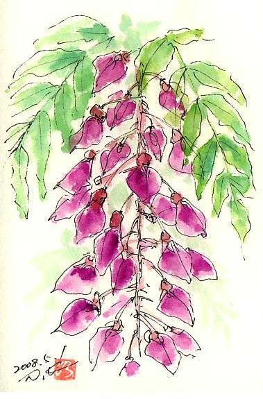 ふじの花房が重そうに垂れ下がっておりますしかし 我が家のは葉が多くて花を隠しています花の数も少なく どうも剪定の仕方が悪いのかもしれませんひと房だけをスケッチしましたお気に召しましたら人気blog投票をクリックして下さい