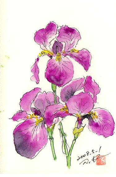 出掛けなかったので庭に咲いた花を描いた一つはアヤメ(正確な名前は分りません)垣根に近すぎて窮屈そうに咲いているもっと伸び伸びとできるところに移してやりたいが場所がなくてスマナイねお気に召しましたら人気blog投票をクリックして下さい