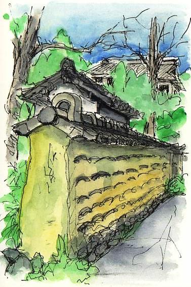 玄関までのアプローチの築地に趣を感じたのでスケッチした荒削りな土の中には瓦の端が顔を見せる屋根や土盛りの湾曲が美しいお気に召しましたら人気blog投票をクリックして下さい