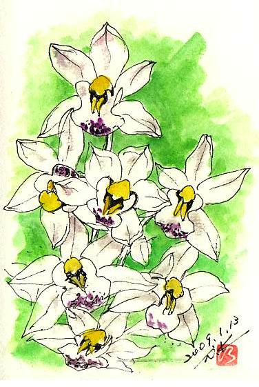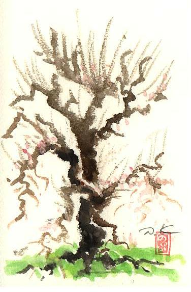 二階の窓から外をみると白梅が咲き出している見下ろす感じで枝ぶりのいい樹を描いてみた白い花をどのように処理すれば良いのかな~あ?苦し紛れに桃色にしたお気に召しましたら人気blog投票をクリックして下さい