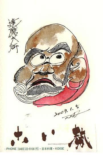 昼食にと立ち寄った店内で見かけた達磨の面(壁掛け)注文した丼を待ちながらスケッチする大きな目玉の白目が強烈だったのに上手く表現できず実物に負けているお気に召しましたら人気blog投票をクリックして下さい
