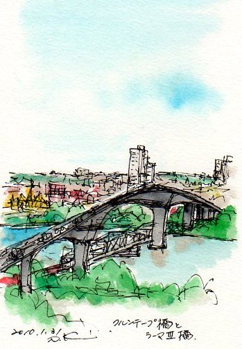 昔ラーマ3世通りはクルンテープ橋で川を渡っていた今ラーマ3世橋が新しく上に架かっているそれでも朝晩の渋滞は緩和していないように思うこれも部屋の窓からのスケッチお気に召しましたら人気blog投票をクリックして下さい