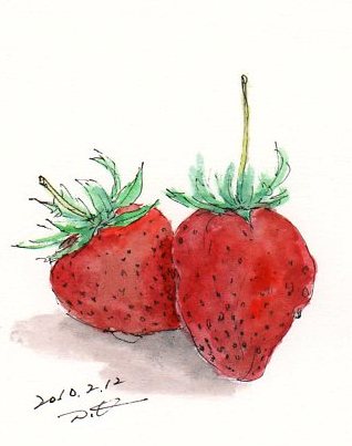 摘み取り体験で持ち帰った苺「とち乙女」頂く前に描いてみた甘さがこぼれているようだお気に召しましたら人気blog投票をクリックして下さい