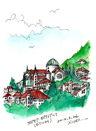 クロアチアの高級リゾート地「オパティア」古くからヨーロッパの人達が避暑や避寒に訪れて優雅に過ごした高級ビィラの面影が・・・スケッチはドームを持つ朝の教会お気に召しましたら人気blog投票をクリックして下さい