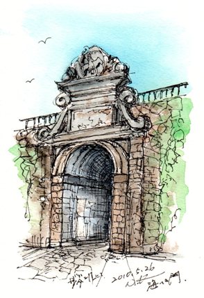 城壁に囲まれた街から海へはこの石の門をくぐり出ることになるすると昨日UPした波止場だお気に召しましたら人気blog投票をクリックして下さい