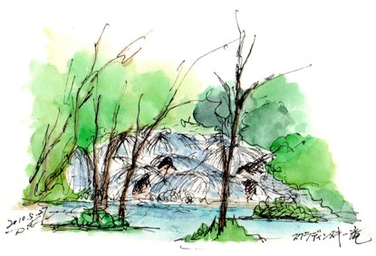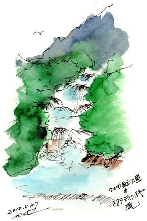 何段にも滝が続く最後に落ちたところから静かな流れが始まる河畔に立ちゆったりとスケッチするお気に召しましたら人気blog投票をクリックして下さい