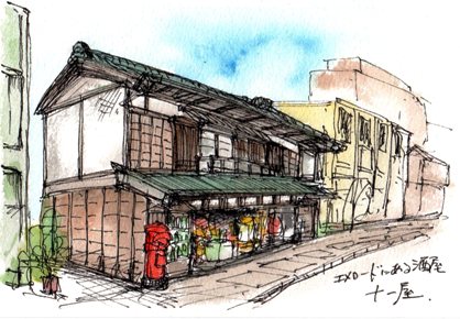 銀座通りに今も商いをしている酒屋です「十一屋」という屋号十一に何か意味かあるのだろう・・・・疑問に思いながらも聞かずに絵筆を動かした誰か知ってたら教えて欲しいお気に召しましたら人気blog投票をクリックして下さい