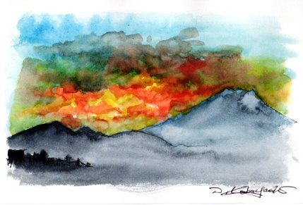 夕焼けのイメージをスケッチしました自宅からの富士の姿は目に焼き付いています雲海の奥から激しく燃える夕日が稜線を際立てますお気に召しましたら人気blog投票をクリックして下さい