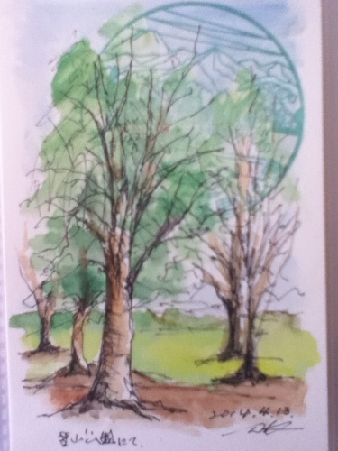久々に里山公園に行く連休中であり家族連れが多く来ていた広場を前に昼食をとりながらスケッチする お気に召しましたら人気blog投票をクリックして下さい