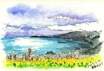 富士山には雲が掛かって見えなかったが輝く海が眩しかった