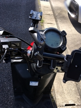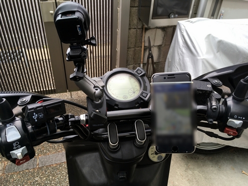 明日は天気が良かったら少し郊外のほうへスクーターで出かけてみたいと思います。大きな国道は流れが速いので狭い道をつないでいこうと思います。そうするとちょっと暗記が難しいルートになるのでスマホホルダーをつけようと思います。 あと、GoProも積もうかと。積載場所は先日装着したブレースバーです。 GSXで一時使ってみたGoPro用マウント。こういう構造なのでカメラの撮影ボタンを押すと、モーメントが大きくてカメラが下がっていくという。それで没になったやつ。 今のところほかにマウントがないので、明日はこれで試してみます。 ブレースバーにGoProをマウント。 続いて、これもGSXで使っていたスマホホルダ。ロック解除ボタンが固くなっていて、スマホの取り外しに苦労するほどになったので別のやつに変えましたが、明日はとりあえずこれで。 ロック解除ボタン・・・、やっぱり固いなぁ。 どうしてもスマホにバイザーが欲しくなるけど、スクーターはGSXと違って、走り出したら止まりたくなくてついついそのまま、という乗り物じゃないことがわかってきました。 天気次第で臨機応変、道端にどいてあれやこれややれる感じです。バイザーは不要。 USB変換器にケーブルをつないでみます。 スマホに給電あり。大丈夫そうです。 明らかに大丈夫じゃないのがGoProのほう。 給電するためにエンジンをかけたんですが、画像じゃわからないけど、アイドリングの振動で思いっきりブルブル振動しています。やっぱり背の低いマウントが良さそうです。 ひとまず明日はこの装備でちょっと遠くへ散策に行ってみます。 昨日の夜走りでわかったのが当然だけどGSXと比べての平均速度の遅さ。明日行く場所はGSXでは行ったことがないですが、昨日走った距離、時間からすると1時間以上かかるかもです。GSXだと近すぎてわざわざマシンを出さない距離なので行ったことがないけど、もっと早く着く印象です。 でもそういうところにバイクで行ってみようかな、という選択肢が出てくるのがスクーターのいいところ。駐輪スペースもまったく心配なし。明日は初給油にもなりそうなので、ナビ、カメラ、給油などなど遠出での知見がいろいろ集まりそうです。GSXでは感じないドキドキ感。新鮮です。