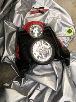 BW'Sのガーニッシュの塗装が乾くまでの間にUSB変換器への電源取り出しハーネスを自作します。イメージはGSXでやった方法です。 使用頻度の低い平型端子。GSXでハーネスを作りましたが、まだまだ余ってます。なのでスクーター用のハーネスも作ります。なるべくお金をかけないように余ってる電材を使います。今回のUSB変換器の接続カプラが2極のやつ。特殊形状だと困りますが、エーモンでも取り扱ってる普通の型式で助かりました。これも再利用です。 ホーンに来てるカプラは2つ。どっちも黒色の配線で極性が不明。色がわかればYAMAHAの配線色で目星をつけられるんですが。 テスタを当てて確認。ホーンの上側に来てるカプラに12Vきていそう。下側のカプラに当てるとゼロです。ちなみに、ボディアースはホーン取り付けボルト部分が使えそうです。 作ったハーネスを割り込ませてだいたいの取り回しを検討。少し修正します。 配線はホーンの後ろの隙間に押し込みます。ボディーアースはホーン取り付けボルトにしました。 キーをオンにしない状態だとUSB変換器の電圧計は当然表示なし。 キーオンで電圧計に表示がきました。通電していそうです。正確にはバッテリーの電圧ではなくてホーンに来てる電圧ですが、さっきテスタで測った電圧より0.1V低いくらいの表示。ほぼ正確だし、GSXと違って電圧低下していないので立派です。本当はスマホとか充電してみればいいんですが、接続ケーブルが手元にないのでまた今度。 ホーンは生きてるかな。指で押さえて鳴らしてみると、驚くほどの大音量。ウィンカーの音も大きいし、ホーンも大音量。台湾の喧騒に負けない仕様なのか。 このウィンカーブザーいいな、配線仕様が同じならGSXにつけてもよさそうです。 配線はこれで終了。次はフロントパネルを戻します。塗って4時間。すごい、触れるくらいには乾燥しています。 ヘッドライトを組みつけ。ノーマルバルブはハロゲンか。この脱着の手間を考えるとLED化とか検討するなら今が楽だけど、足っぽく使いたいので、トリガーは壊れてからにします。 フロントパネルを組み戻し。化粧直ししたガーニッシュが美しい。まるで新品? あれ、向かって右のウィンカーが曲がってます。このスクーター、向かって右側に転倒傷があります。ショップで現認したときも向かって右のウィンカーは国内アクシスのウィンカーレンズを使って修理したとかなんとか言ってました。 このウィンカーマウントブラケットも錆がすごく目立ちます。なんだ、曲がってもいるのか。 安ければ交換してもいいし、そこそこ高いなら錆を落として曲げも直して遊ぼうかな。 次はスマホとGoProをマウントしてみます。なるべくありものを活用したいと思います。