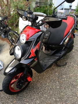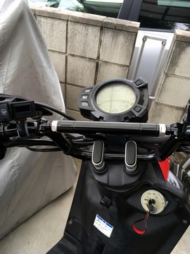 日中は猛暑だったけど深夜になると半袖ではなんとなく涼しく感じます。 寝苦しい熱帯夜。飲み会のない金曜日は別に寝なくていいわけなので、0時にスクーターを出して夜の徘徊に出発することにします。 エンジン音も静かで深夜の始動も気になりません。 風を切る、なんて速度は出ないですがちょっと薄ら寒い感じです。 気を抜くと40kmくらいにスピードが落ちてます。後ろに後続車のライトが見えたらアクセルオープン。いや、走らないな。 クルマが通らないような、脇道を選んで走っていきます。郊外に近づくと結構な闇。クルマや大きなバイクに乗ってると感じない心細さというのか、ちょっと胸の奥がキューっとなる感じは、バイクに乗り始めた学生の頃の夜走りを思い出します。 トコトコ走って深夜に缶コーヒーブレイクをしにスポットまでやってきました。 缶コーヒーを買うか、と思ったら、やべぇ、意識高いスポットの証、ジュース缶のごみ箱がないという。ウェストバッグもなし。その辺においていくわけにもいかないし・・・、撤収です。 交通量の少ない道、少ない道、を選んで走ってたらだんだん斎場に近くなってることに気づいて、嫌な感じ。早く離れたいな、って思うけどほんと低速でエリアから離れられないという。 短い散歩だったけど、こういう闇の深さとかGoProで撮れたらいいな、って思います。だけどスクーターにはマウントするところがないです。GoProだけでなく、スマホもつけたいし、USB変換器もつけたいです。幸いBW'Sはバーハンむき出しなので、メーター周りがカウルに覆われているスクーターよりは取り付け検討の余地はありますが、全盛は無理です。 なにかいい方法はないかな、と調べていたらいいものがありました。 こんなものがあるとは。ブレースバーとかいうやつ。バーハンの剛性アップアイテム?バーハンのバイクを所有したことがないので、こういうアイテムがあるなんて知りませんでした。 安いやつは1,000円しないやつもあるけど、目的はGoProとかのアクセサリー装着用。安いやつは細い径のものが多くて、φ22.2mmが確実そうなのはそこそこ値がします。 ハンドルを採寸して取り付けピッチに調整可能っぽいものを買ってみたけど、やっぱり汎用品にはネガがつきもの。 バーを最短に調整しても右側のマスターシリンダーが邪魔して、どうしても左右対称の位置に設置できませんでした。しかも取り付け位置が微妙に変曲部に来てしまうという。 なんとか取り付けられたのがこの状態。やっぱり斜め。あと5mmくらい短く調整できたら。 乗車視点からみたらこんな感じで、そこまで斜めになってる感じはしないのでOK。 これでいろいろアクセサリーを装着できそうです。次は・・・、USB変換器?どこから電源を取る?カウルの外し方とかも不明。完全手探り状態です。