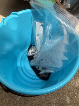 金曜日から土曜に日付が変わる前、どうしてもうずうず。夜、どっか行こう!スクーターでどこかに行きたいけど、曲がったビスを注文中。定形外郵便を指定したので、到着が遅くて届いてません。 走れないな。 遠くには行けないけど自転車で。 緑の木箱をオープン。暗闇のなかササっと組み立て。熱帯夜といっても日差しがなければ涼しいもんです。 チャリでキコキコっと近くのセブンまで。 そこで買ったのが、これ。セブンの焼酎。小瓶です。安いな。 別に自分が飲むために買ったわけじゃないです。 とあるものを作りたかったから。冷蔵庫に入ってたバナナ。これであるものを作ろうかと。 ビニール袋にバナナ、焼酎、砂糖を入れて終わり。本当はバナナはつぶしたほうがいいとか、酢をいれたほうがいいとか書いてましたが、そもそもの効果を信じてないのでこんなところで様子見です。 朝起きて袋を見てみたら、いい感じで腐った水っぽくなってきてます。まだ見た目だけで発酵はしてないと思います。 夕方からディーラーに行くので、それまで屋外に袋を放置。温度を上げて発酵を促します。袋が膨らんでこないから発酵は弱いか。それでも近づくと匂います。まだ甘い匂いかな。急ぐもんでもないので、明日まで放置してみようかな。 夕方、変なエラーが出まくってる自分のクルマを点検してもらうためにディーラーに行きました。整備枠はとってないので、代車を予約してました。今日は預けて、明日以降で何が不具合の原因か調べてもらいます。入庫が長引かないといいけど。 今回の代車はパッソでした。 明日には不具合の原因がわかろうとわかるまいと、代車は返さないといけません。 明日はお参りデー。そんな遠くには行かないけど、せっかくだから代車で行ってみようかな。 さて、ごみ収集車の後ろからたまに滴ってる、臭いのする汁をあえて作ってますが、これはバナナトラップです。 いや、庭のシマトネリコに塗ったら、カブトムシこないかな、って。近くの雑木林とか行っちゃうと普通になっちゃうので、庭でトライ、というのが趣旨です。 雑木林がいいんだろうけど、それはそれ。なんでもまずはトライです。