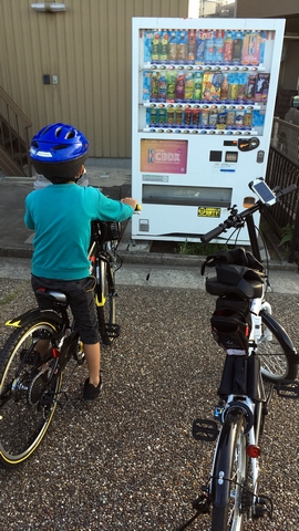 そんなこんなでも、少しずつ遠出の練習も。とりあえず今日の目的地は小学校近くの自販機まで。100円自販機、飲みたいもの微妙。そんな中から選ぶのが一興。