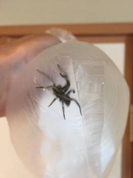 取り込んだ洗濯物に大きな蜘蛛がー、なんて騒いでいたので、自分が捕獲することに。