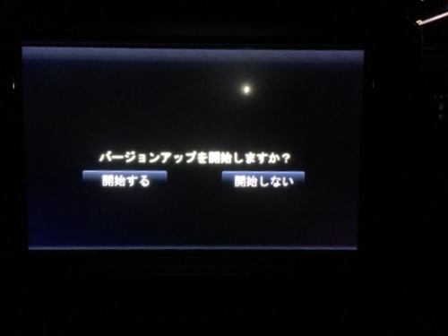 このカードをナビ本体に戻して、クルマのキーをオンにするとナビの更新を促す指示が画面に表示されるので、指示に従ってボタンを押していきます。
