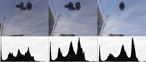 ・・・、脳内のイメージと近いのは補正なしかなぁ?空だけじゃなくて全景も撮ってるのでそのヒストグラムも確認。やっぱりバランスが取れているのはゼロ?