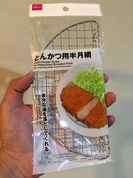 ということで、何か敷くものはないかな、と探していて、ダイソーでよさそうなやつを見つけました。四角の焼き網もあったけど、スリムなほうがいいかな、ととんかつ用の敷網を選びました。
