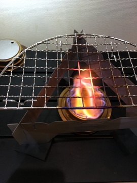なんとなく火力が弱いと思ってるけど金網なんて軽く赤銅色に持っていく熱量は持ってそうです。この上でなにか焼いたらおいしそうだけど、メチルであぶった食べ物は気が引けます。