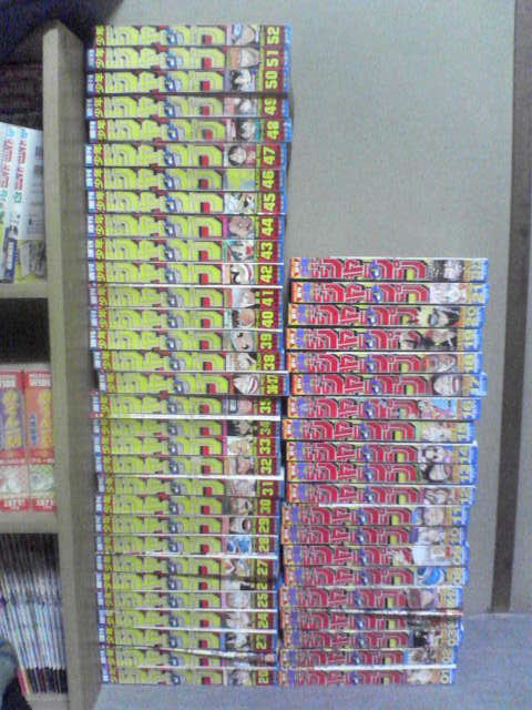 実家の弟の部屋でお宝(?)発見!!約1年分のジャンプのバックナンバーですw繰り返しますが、実家の弟の部屋ですからネ。別に取っておく主義ではないので、単に捨てそびれて溜まってただけのようです。姉弟揃ってモノグサなやつらです--;3つくらいに分けて紐でくくってあったのを発見したので、思わずばらして、番号順に並べ替えて積上げちゃいました。( ^ー゜)bそして当然あとで弟に怒られましたけどね。こうしてみると、1年分ってこんなもんか、って感じですね。(そうか?)2006年は52号まで出てますが、合併号とかもあるから年間40数冊ってところ。1年前のを見ると、「謎の村雨君」とか載ってて懐かしかったー。あと、ハンドボールのやつとか、野球のやつとか、ミコトのやつとか、ユンボルとか、新連載がここ1年でことごとく打ち切りになってるwうーん、厳しィ~(>_< )来週号と、その次の号で2つの新連載が始まる、ということで、もて王とP2!の打ち切り説がまことしやかに流れております。もて王なくなったらかなりツライんですけどー。何とかならないもんかなぁ。ワンピはコンスタントに面白いけど、ブリーチも最近なんだかなぁ、だし、Dグレは大分前から読まなくなっちゃったし、ムヒョも最近読んでないなー。リボーンも。。。しかし、ホントにジャンプ好きなのか、自分。。。( ̄Д ̄;) どれも最初のうちは好きだったんだけどなぁ。あ、ネウロはずっと好きだ♪どうやら、バトル色が強くなって、バトル一辺倒になっちゃうと、とたんに興味がなくなっちゃう傾向にあるみたいです。まぁ、所詮、少年の心は持ち合わせてないんで(- -)ところで、最近知ったんですが、結構、単行本にするときに本誌掲載のものに手を入れるものだそうで。H×Hくらいかと思ってましたwww(でもアレはアレで貴重かもしれない。)我らが空知先生も、AB型らしい完璧主義を発揮して、大分手直しされてるらしいですね。本誌を読んでても別にそんなに雑だとは思わないけど。でも、単行本では白黒になっちゃうカラーページとか、表紙が銀魂だったりするときは、結構貴重ですよね。これからは銀魂ページだけでも切り取って保管しておこうかしら、なんて思ったりなんかして。とかいっておきながら、実際めんどくさいからやらないであろう自分を良く知っている。