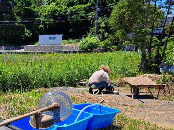 いつものメンバー4人が交代で出動、水をポンプでくみ上げて溜めておく