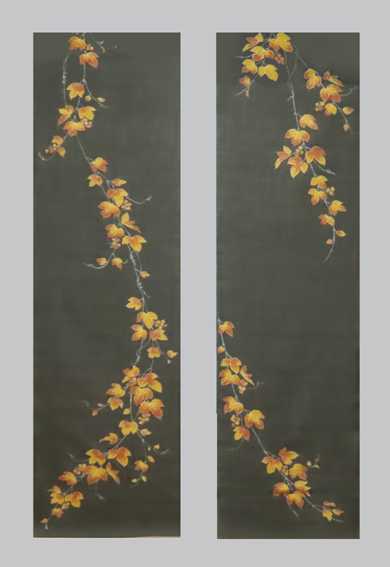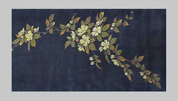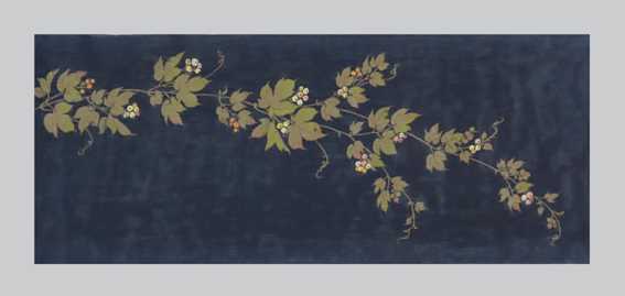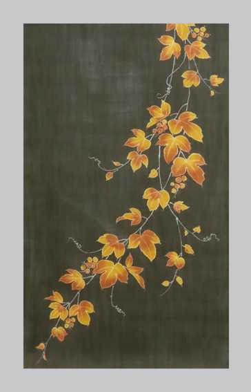 能登上布に抜染糸目着色ツタ模様