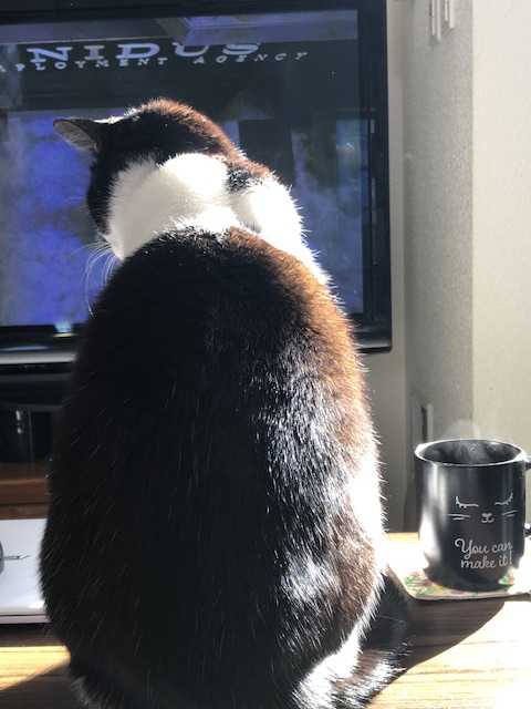 息子が洗濯して、ベランダに干した洗濯物の番人をしてました。