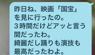 昨日はT子が、映画「国宝」を観てきたよ!との