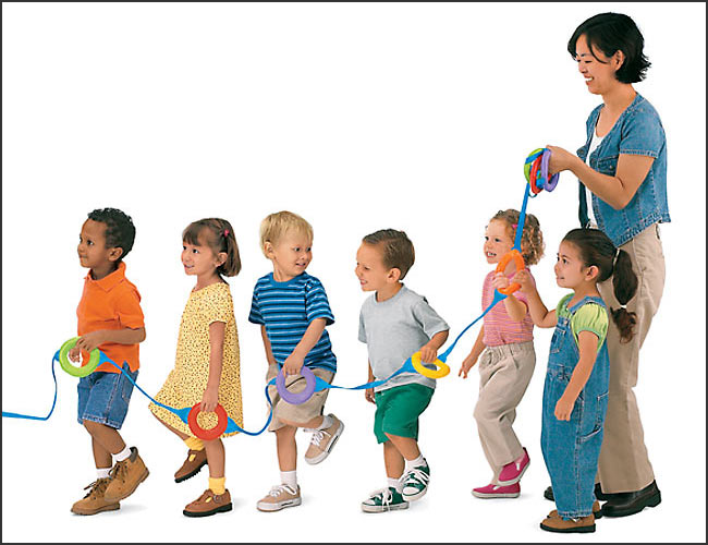 園内探検や移動に大活躍。追い抜かさずに並ぶ練習にもなっています。