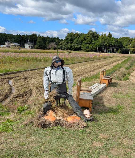 おはようございます数年前に 伊勢市斎宮の コスモス 近鉄電車と一緒に 撮りましたが脳裏にあり 出掛けました現地に着きましたが コスモスの姿無し 売店で聞きましたら 猛暑で花が つかない状態 刈ってしまったと検索しまして アスピア玉城に 咲いている との情報早速行きました 見事でした アップいたします愛嬌タップリの 案山子ですこの光景が 目に入ってきました少し アップで撮りました結構見学に見える方 多かったです向日葵が混在して 満開状態でした11月3日 三連休です色は ピンク 赤 白 でした向日葵は満開 コスモスは 蕾もありましたが峠 超えていました贅沢ですね コスモスと 向日葵の 合唱スマホで 取り合って 見せ合う 仲良しですね天に向かって 自慢していました 華麗でしょ 綺麗でしょ と向日葵 横から 撮ってみました咲き誇っていましたシッカリ 堪能して 伊勢神宮に 向かいました