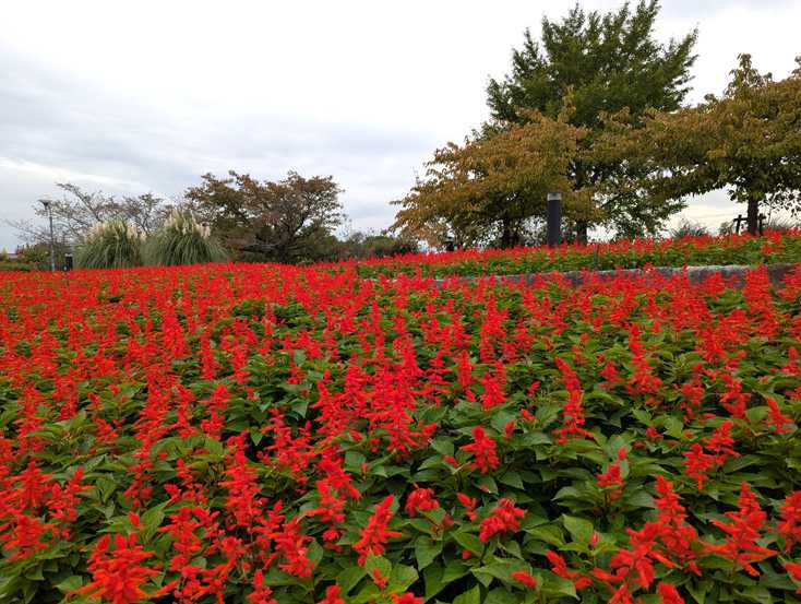 おはようございます名古屋市の中心部では クリスマス関係に イルミネーションが完成し始め 点灯されています11月半ばですが 追い立てられる気分に なってしまいますサルビア・コキアが咲き誇ってる 情報を得まして 出掛けましたこの公園には農業科学館も設置されており 2回に分けて アップいたします駐車場から 目に入りました 真っ赤な光景少しアップにしました本当に 真っ赤ですね東屋を入れて撮りました東屋の登っていく 通路の両側に 植栽されていましたコキアが この様に 色ついていましたカメラの色 紅葉に近づけて東屋を 入れてみました愛嬌で 目が入っていました ツイツイ ニッコリですねアップにしてみましたコキアと東屋 白黒で 撮ってみました