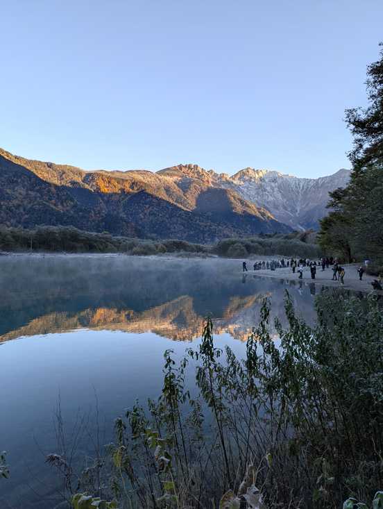 おはようございます一年ぶりに 上高地に 行ってきました明神池に行きたいのですが もう4年のブランク往復で8km トンカツの足が 弱くなって 歩けないカメラ 三脚 椅子等 の負担が大きいのです今回も大正池から 河童橋 でした3回に分けまして アップいたします太陽が昇り 大正池 の 写り込みです名古屋を22時に出まして 中津川経由奈川 から 沢渡駐車場1時半に着き 仮眠して 6時の始発 6時半の大正池に着きましたこの時間でも 川霧 ぎりぎりでした右側のごとく 観光客は一杯でした太陽が当たりますと 金色 霜は溶けてしまいますトンカツ初めて 家族3人で訪れましたときは 自家用車で センターまで入れました 50年以上前ですが凄い光景ですね 日本を代表する 山並みですから少し移動しまして 撮りました 川霧い感動して歩きました枯れ木が殆ど無くなりました 50年前は ボートがあり家族で乗りましたが 川底は浅く オールが川底に つかえました枯れ木今では 数本です寒々した 光景ですね色黒で撮ってみました 冠雪はマダ ほんのりでした川霧を見るために 夜を 徹しての 動き十分感動指せてくれましたこの様な状態です 零下の世界です大正池の少し上流 桂川 かなりの早さで 流れていました尚大正池は 焼岳の大正4年 1915年の噴火により 土石流 溶岩により 桂川が堰き止められて 出来た池です