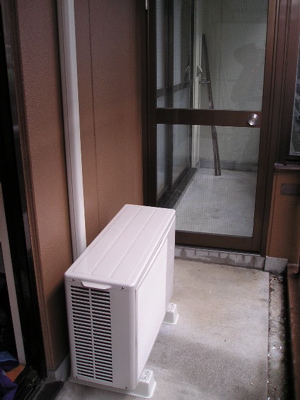 冬はあんまりエアコン取り付けの仕事はありません。このところぼちぼちあります。有りがたいことです。これは公団づりというタイプです。古い壊れたエアコンを外して、金具も交換です。今回もKさんに応援を頼みました。余裕を見て2時間くらいだと思いましたが、4時間弱も掛かってしまいました。室外機のスペースが狭いのです。それと室外機が大きくなっていて、なおかつ物干し金具が邪魔です。よけいに余裕がありません。何とか室外機を取り付けれたのですが、最終的には、物干し金具につっかえてしまい。そのままでは物干し金具がつきません。取り付けの穴を開け直してやっとOKです。やっぱり何でも倍以上の余裕を見ておかないとダメですね。然しお客さんには喜んでもらえました。ああ良かった。