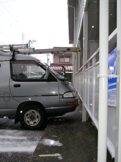 金沢から山の方に少し向かったところに鶴来と言うところがありますが、そこで普通の靴で滑るだろうなと思いクルマから降りた。全く滑らない。どうもかなり気温が低いらしい。雪が解けて水の膜が出来ないと滑らないのです。その後金沢に帰っても今日は特別寒かった。しかし綺麗な雪もこんなんになりますので、積んでおくのではなくて消して欲しいです。