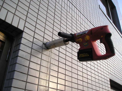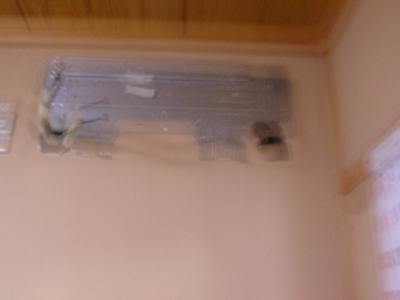 今日は穴あけです。非常に堅くて中々あきません。コンクリートも堅いのと柔らかいのがあります。こんな事を言っては不謹慎ですが、例の姉葉氏の建物ならもっと簡単にあいたのに。まあしっかりした建物です。正味2時間弱で10cmくらいしかあいてません。こちらの方が疲れてしまい、ギブアップして帰ります。計画では此処を二つ穴を開けて1台だけ室内機を付けて、もう一台他の場所で屋根置きを付けるつもりでした。一つも終わってません。明日出直しです。