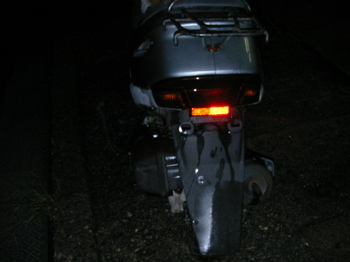 やっと此所までこぎ着けました。実はまだまだ遠い道のりです。Oさんは毎月電話代は払っているのですが電話機が壊れていてつながりません。携帯は持っているのですがプリペイド携帯で全部使ってしまったので掛けることは出来ません。私が一生懸命掛けているのですが応答はありません。仕事が朝早く夜遅いので、家に行っても中々捕まりません。そんな無駄なことやめとヶという人が居るでしょうが、この事はは必要だと思っています。私はバイク代金、修理代金、自賠責手配、名義変更、ヘルメット代金、すべて無料のボランチアです。これすべてで、5日くらいかかってます。