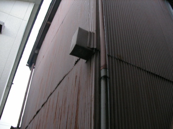 シャッターは洗った方がいいですよ、という話をお客さんにしましたら、お客さんは勘違いをされて洗ったらだめだと思ったらしいのです、そこでお家のトタンを例にとり社長が説明をしました。雨がかからないところが錆びているでしょ。だからシャッターは洗った方が錆びにくいですよと。ついでにお向かいさんの二回のエアコンの室内機にカバーがかかってますが破けてます。カバーをかけると湿気がこもってよくないと私は考えてます。そんなことをするより何もしない方がいいと思います。