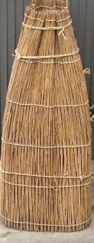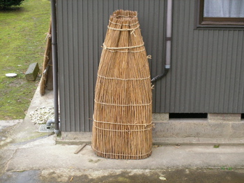 縦と横からです。この中には何が隠されているでしょう。ここは金沢市内ですが、山の方なので雪が少し多い、それで何かを雪から守る雪囲いですね。これがこういう風に囲われているのは初めて見ました。雪から木を守る雪つりもいっしょにしてました。例の板金をしたお家のです。ご主人が仕事が休みなので冬の準備をされてました。