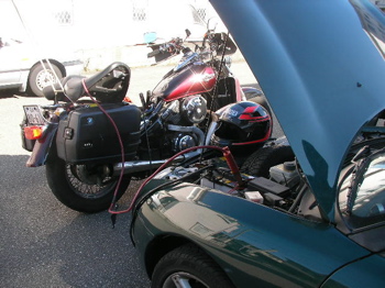このごろは寒くなってきたのか、すこしエンジンがかかりにくくなりました。それでも、まあなんとかエンジンは掛かるのですが、発進出来ないのです。ギヤをローに入れクラッチを繋ごうとするとエンジンが切れます、何度も何度も。近所の人が興味ありげに見ているのですが、発進不可です。原因は前から分かってました。安全のためにサイドスタンドを出したままだと、発進出来ないように出来ているのです。サイドスタンドを上げてもまだ出ていると彼は認識しているので、何度か出し入れをすれば治っていたのですが、今回はだめです。ジャッキを二台持ってきてスタンドを上げてみました。どうもスイッチのチョボの動きが少ないようです。そこにシュシュッとスプレーしたらやっとスムースに動くようになりました。私的にはこんな安全策はない方がいいと思うのですが、家の車庫は少し坂に成っていて、この間息子がサイドスタンドを出したままほんのちょっとだけ前進させようとしたが、エンストして出来なかったというのです。こんな息子のような人間が多いこのごろではこんな安全装置も必要なのかなと思う今日このごろです。