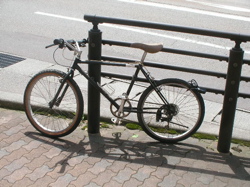 昨日は店の閉店時間があるので車に二台分の段ボールや発泡スチロールを積んだままバイクにて帰りました。車だと60キロの片道が1時間弱、バイクだと其れがもう少し早くなります。バイクか車を取り付けの為に常時店に置いておいたのですが、そろそろ引き上げです。最初に車に自転車を積んで来て車を置いて自転車で帰った逆に、今度は自転車で車を取りに行きます。前はよるだったのですがかなりの汗をかき1キロ体重が落ちました。今回は暑い昼間です。前よりも装備を充実させなければと言う事で、スペアタイヤと空気入れと、水を積み込みました。最初にガソリンを入れました。河北潟の入り口で確か20キロちょいの所だと思います。このように馬もいて夏休み中はいつも混んでいます。長い列を着いてやっと自転車にガソリンを入れる事が出来ました。エンジンはすなわち私ですのでガソリンはソフトクリームです。流石にガソリンを入れたすぐの2~3百メーターはペダルもすいすいで軽く時速30キロを超えましたが、いつもの様に即エンジンが調子悪くなり20キロ台です。次のガソリン地点40キロの少し手前で、エンジンが少し休みたいと言うのでほんの数分休みました。コーラと半熟卵とカレーです。量は少なめですがガソリンタンクがあまり重くなるとどうも。そこを出発したすぐにこんなん見つけました。小さい娘がいいですね。途中に少し前に再会したもとの上司のお家によらせていただきました。目的地に着いた頃はもう暗くなってました。33,8℃だったのですが、ゆるい向かい風であんまり汗もかかずにまあまあ意外に涼しく走り切る事が出来ました。全行程56,08キロ、平均時速は18,0キロ/h、所要時間は3時間5分51秒で前よりも5分くらいオーバーですが暑い真っ昼間でまあまあの記録です。体重は落ちてませんでした。以前はコーラを飲んだだけだったからかなー?