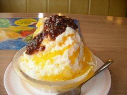 話せば長い事ながら、昨日は練乳が無いと言う事で買いに行ってもらった。宇治金時を注文したはずだったが来たのはイチゴ、それで良いと其れを食べました。今日は宇治金時が切れていると言うので、特注でマンゴー金時を作ってもらいました。略してマン金、なんだか凄くリッチです!!