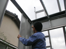 朝から掛かってまだ内装も取り外せてません。午前中でめどを付けるつもりだったのですが。天井の内装を取り外してやっとの事で屋根の骨のボルトの取り外しにこぎ着けました。23時55分12時21分 やっと扉と其の上の外壁が外せました。お昼休みに特別にエアコン取り外し取り付け講習をしました。せっかく遠い所から来ていただいたのでね。外機のガスを止めます。12時56分室外機の配管を外します。2時5分 やっと念願の空が見えました。希望の光が見えてヤレヤレです。