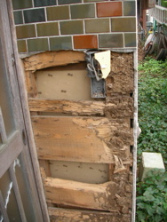 松任の実家へ行ってみるとこうなってました。前々から兆候は有ったのですが、モルタルにタイルが貼ってある玄関の前が大きく剥がれ落ちているでは有りませんか。シロアリくんの仕業です。人が住んでないとこう成るのですね。