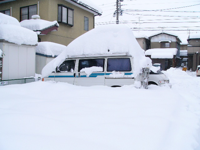 ここ金沢ではAM11時現在で気温0,8度、積雪67cmです。私のお気に入りのキャンピングカーもこのとおりです。私の二階の部屋の窓からかわらなんかはまったく見えません。これでも石川県のほかの地区よりも少ないほうです。