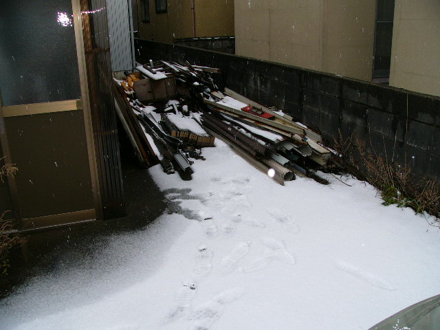 手前の右のほうにシャッターの古いのがあります。左はアルミの古いのです。これらを軽トラに積んで売りに行きます。アルミだけ別に重さを量ります。その前にトラックごとはかりに載せて量ってあります。鉄はまだトラックに積んであります。大きなクレーンが電磁石で降ろしてくれます。バチーンくっつきました。しめて9300円、資源は有効に使いましょうね。お昼ごはんを食べずに仕事をしたので、おそいひるめしです。ラーメンに卵かけご飯セットです。あまりに腹が減っていたので写真を撮り忘れてしまいました。しっかりと間食です。